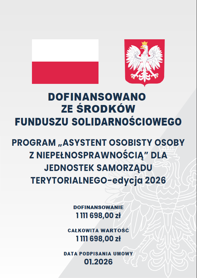 Nadmieniamy, iż ogłoszony przez Ministra Rodziny i Polityki Społecznej nabór wniosków na realizację zadania w ramach Programu „Asystent osobisty osoby z niepełnosprawnością” dla Jednostek Samorządu Terytorialnego – edycja 2026 finansowany jest ze środków Funduszu Solidarnościowego (na podstawie art. 7 ust. 5 ustawy z dnia 23 października 2018 r. o Funduszu Solidarnościowym (Dz. U. z 2024r poz.1848).