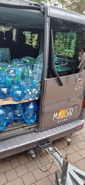 W dniu wczorajszym (10.04.2025 r.) w związku z bardzo poważną awarią sieci wodociągu w Otwocku zostało przekazane 1425 litrów wody butelkowanej.