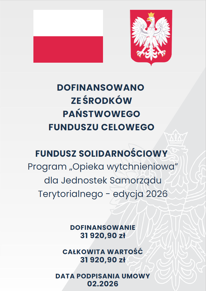 W związku z pozytywnym rozpatrzeniem Wniosku przez Wojewodę , zgodnie z podpisaną Umową Nr 74/OW_JST/2026 w dniu 15-02-2026r otrzymamy środki finansowe w łącznej kwocie 31 920,90 zł .